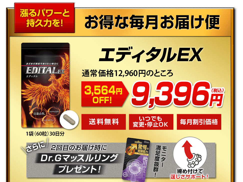 この記事では、エディタルEXの口コミ・効果はどうなのか?最強成分配合のエディタルEXを「本音の効果」と、ネット上の「リアルな口コミ」を忖度なしで公開します。